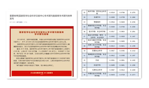 2020年6月25日,據中國社科院最新發布的《國家哲學社會科學文獻中心學術期刊數據庫學術期刊榜單》顯示,在2019年學術期刊“用戶關注度”排名中,《沈陽工業大學學報(社會科學版)》在578種綜合性人文社會科學類期刊中排名第39,在該類高校學報中排名第20,進入前10%。