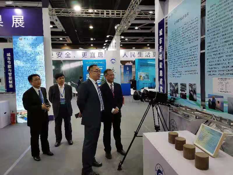 本屆博覽會設置城市更新展區、技術產品展區、智慧城市展區、智能制造及建筑工業化展區,吸引了國內工程建設、物聯網、智能服務、鋼結構、生產運輸裝備制造等行業的龍頭企業100余家。為拓展城市更新、建筑制造業等領域的產學研合作版圖,學校將特裝展位分為“城市節能與智能制造、城市環境治理、城市基礎設施建設”三個主題,對學校科技成果進行宣介,并運用易企秀、視頻演示、二維碼、展板與實物展品等多種形式對學校18項最新科技成果進行了全方位、立體式宣傳,吸引了參展、參觀企業的廣泛關注。