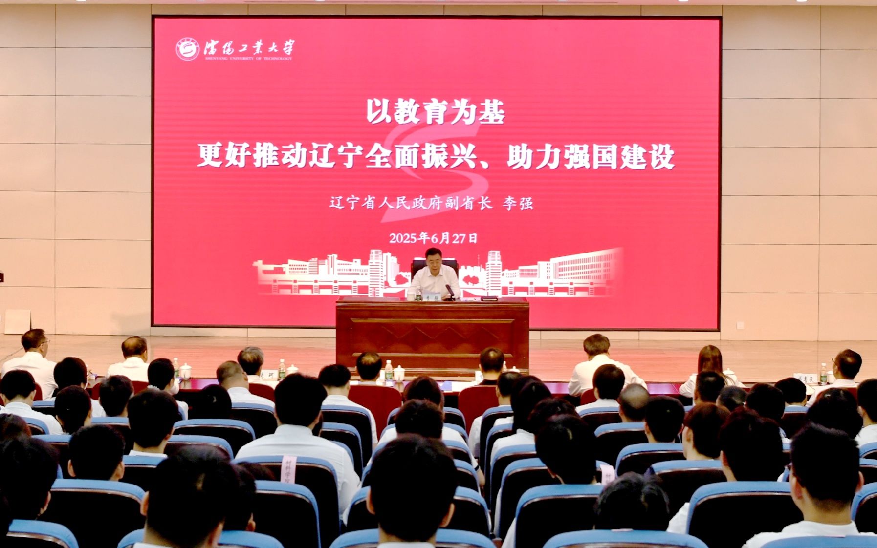 6月27日,遼寧省人民政府副省長李強到沈陽工業大學講授思政課,深入貫徹落實習近平總書記對學校思政課建設作出的重要指示精神,圍繞“以教育為基,更好推動遼寧全面振興、助力強國建設”為題,從教育強國建設的深遠意義、遼寧在新時代的發展使命,以及青年一代的責任擔當三個方面,同師生們深入交流,勉勵廣大師生牢記囑托、接續奮斗,為推動遼寧全面振興發展、奮力譜寫中國式現代化遼寧篇章貢獻智慧力量。