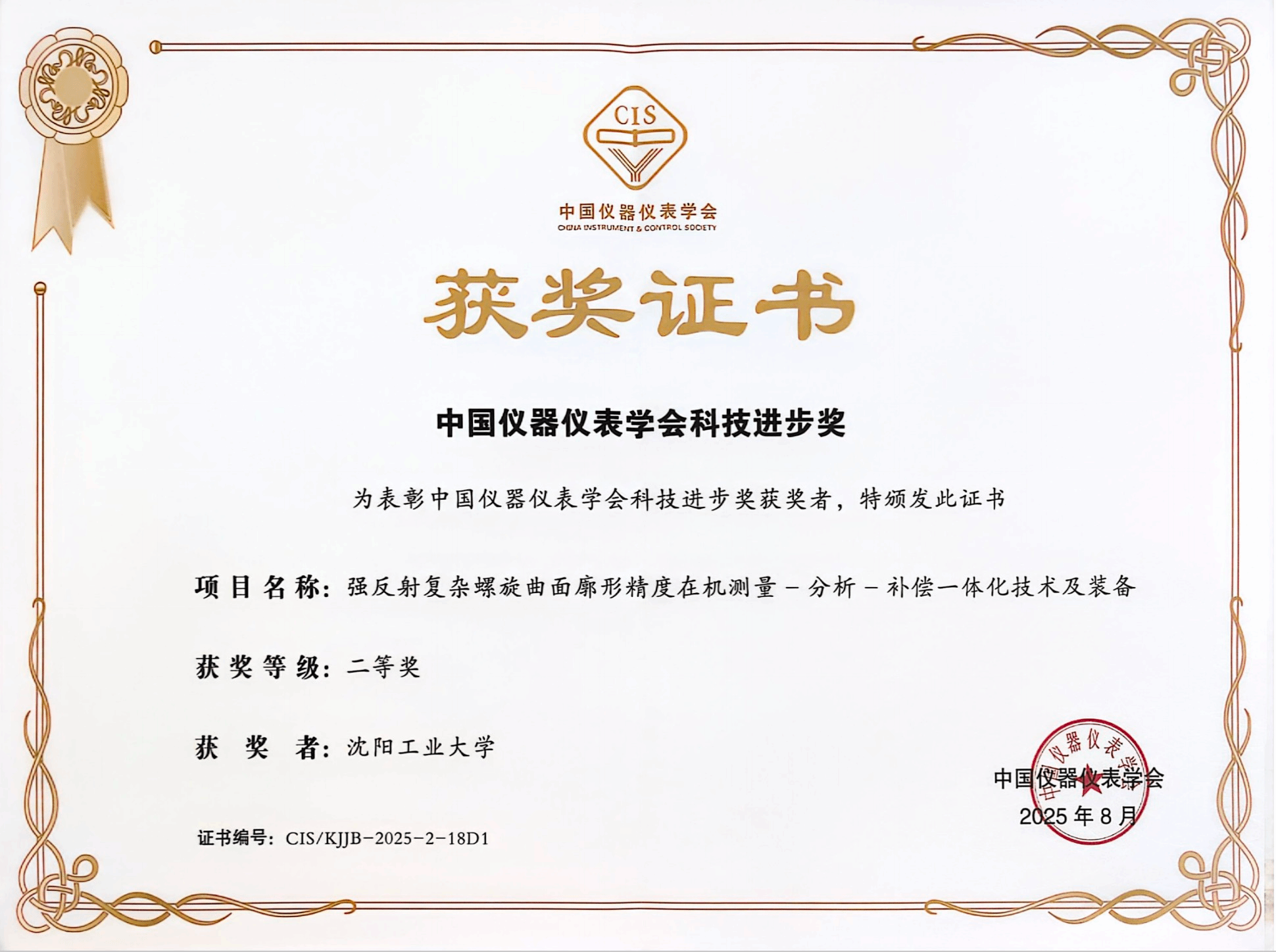 8月13日-15日,2025中國儀器儀表學會學術年會在湖南長沙舉辦,會上,中國儀器儀表學會公布了2025年度科學技術獎獲獎名單,作為第一完成單位,我校共有2項科研成果獲獎,其中信息科學與工程學院劉斌教授帶領長輸油氣管道內檢測團隊牽頭負責的項目“油氣管道裂紋內檢測關鍵技術及應用”榮獲科技進步獎一等獎;機械工程學院董祉序教授帶領數控制造技術及裝備團隊牽頭負責的項目“強反射復雜螺旋曲面廓形精度在機測量-分析-補償一體化技術及裝備”榮獲科技進步獎二等獎。
