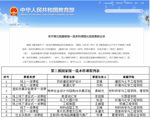 近日,教育部公示了第三批國家級一流本科課程認定結果,沈陽工業大學共有9門課程成功入選,覆蓋了一流課程五大類別,標志我校在課程建設領域取得又一重大突破。截至目前,學校共獲批24門國家一流本科課程,總數位居省屬工科高校首位,充分彰顯了我校在本科課程建設領域的強勁實力與卓越成效。