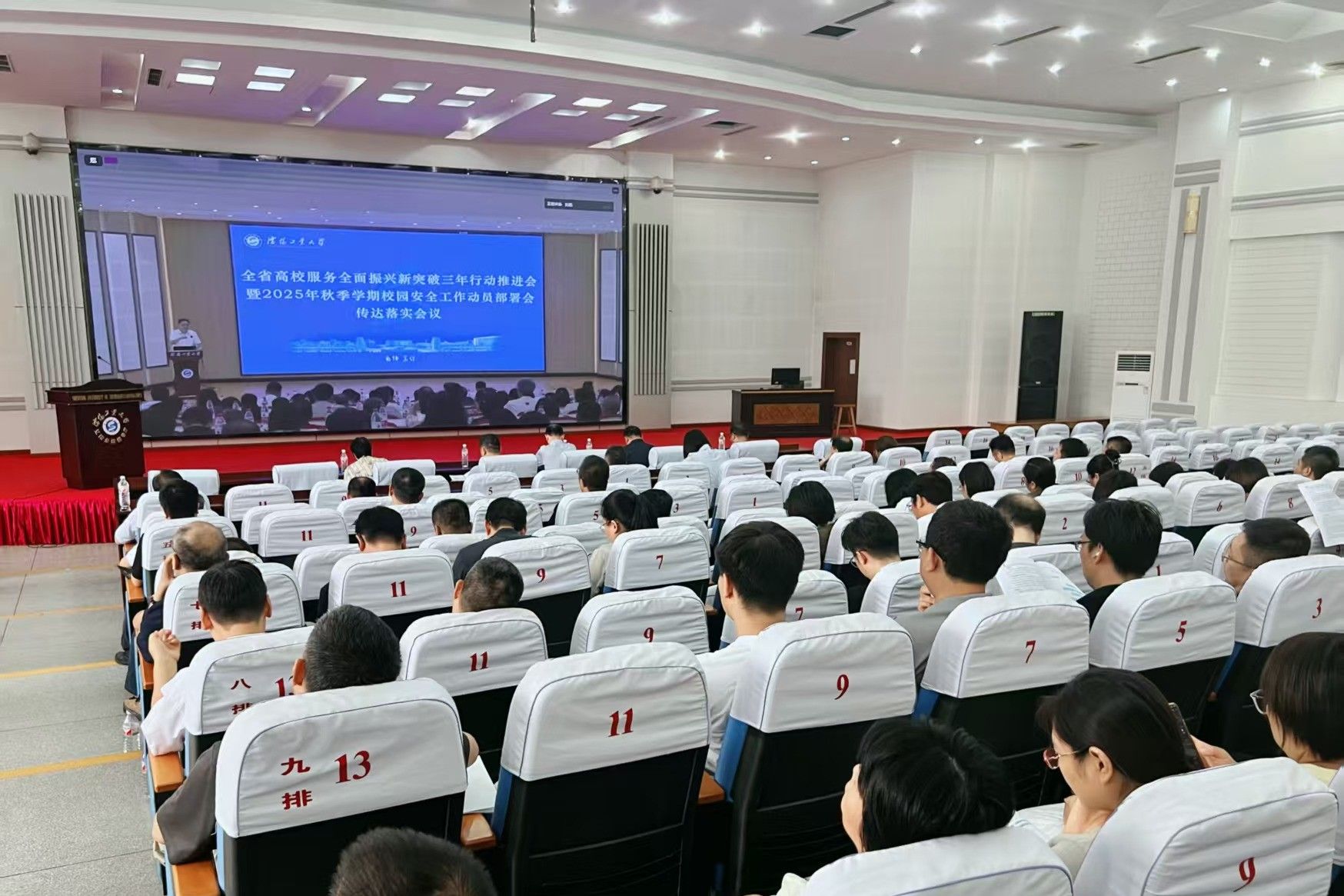 會上,賈玉明傳達了全省高校服務全面振興新突破三年行動推進會暨2025年秋季學期校園安全工作動員部署會會議精神。他指出,此次會議深入學習貫徹習近平總書記在全國教育大會上的重要講話精神,在遼寧考察時的重要講話和重要指示精神,認真落實全省教育大會及十三屆省委八次、九次全會部署要求,總結全面振興新突破三年行動實施以來取得的成績,為下一步高校服務遼寧振興發展工作明確了方向和重點。同時,會議分析研判當前高校面臨的安全形勢,對秋季學期校園安全工作進行了全面部署,為學校統籌發展與安全、營造和諧育人環境提供了根本遵循和行動指南。