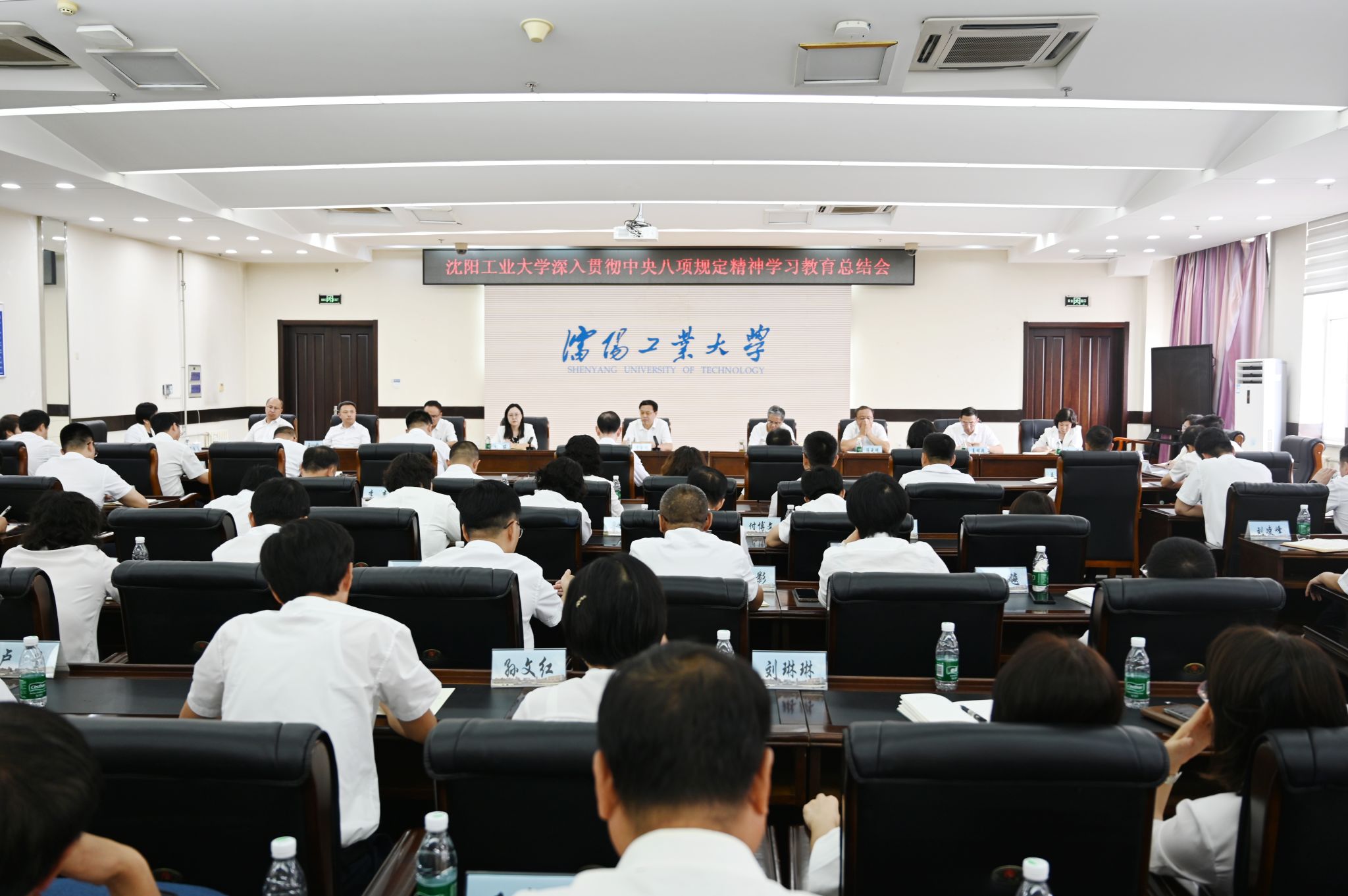 9月11日,學(xué)校深入貫徹中央八項(xiàng)規(guī)定精神學(xué)習(xí)教育總結(jié)會(huì)議在校部五樓會(huì)議室召開(kāi)。學(xué)校黨的建設(shè)和全面從嚴(yán)治黨工作領(lǐng)導(dǎo)小組成員,黨委委員、紀(jì)委委員,學(xué)習(xí)教育工作專班成員單位負(fù)責(zé)人,各二級(jí)單位黨政負(fù)責(zé)人參加會(huì)議。會(huì)議由黨委書(shū)記賈玉明主持。