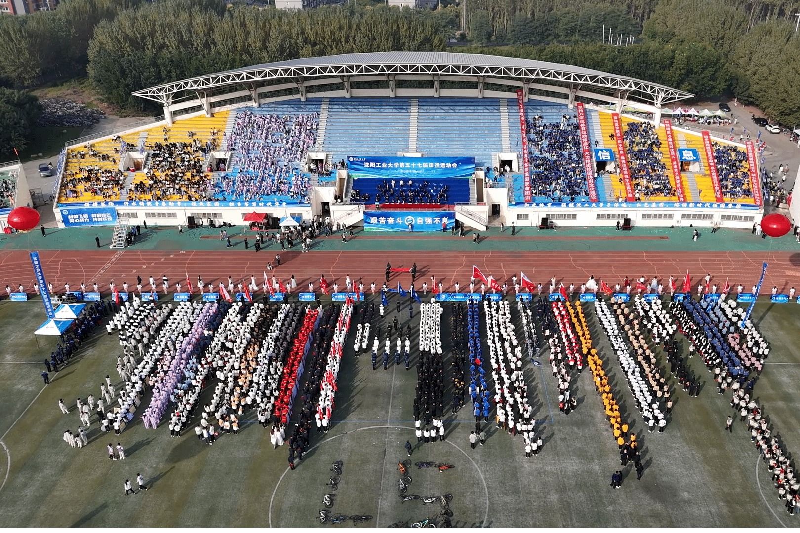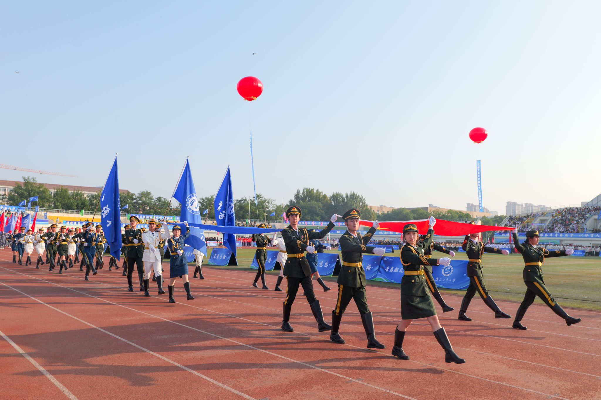 激昂雄壯的《運動員進行曲》奏響時代強音。國旗方隊、校旗方隊、校訓方隊、旗海方隊、花束方隊、裁判員代表隊以及各單位代表隊依次進入運動場。師生們活力滿滿,各具特色的隊列造型展現學院特色,點燃全場熱情。彰顯出工大師生團結奮進、銳意進取的精神風貌。