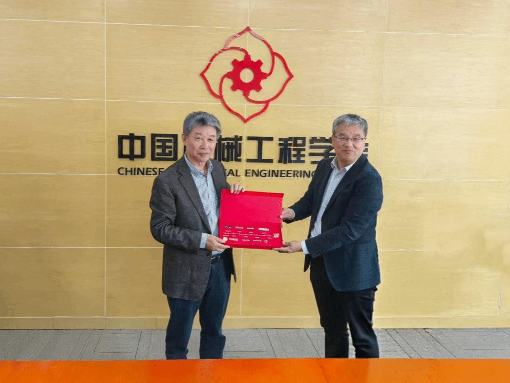 校長張珂向中國機械工程學會副秘書長陳超志校友贈校徽