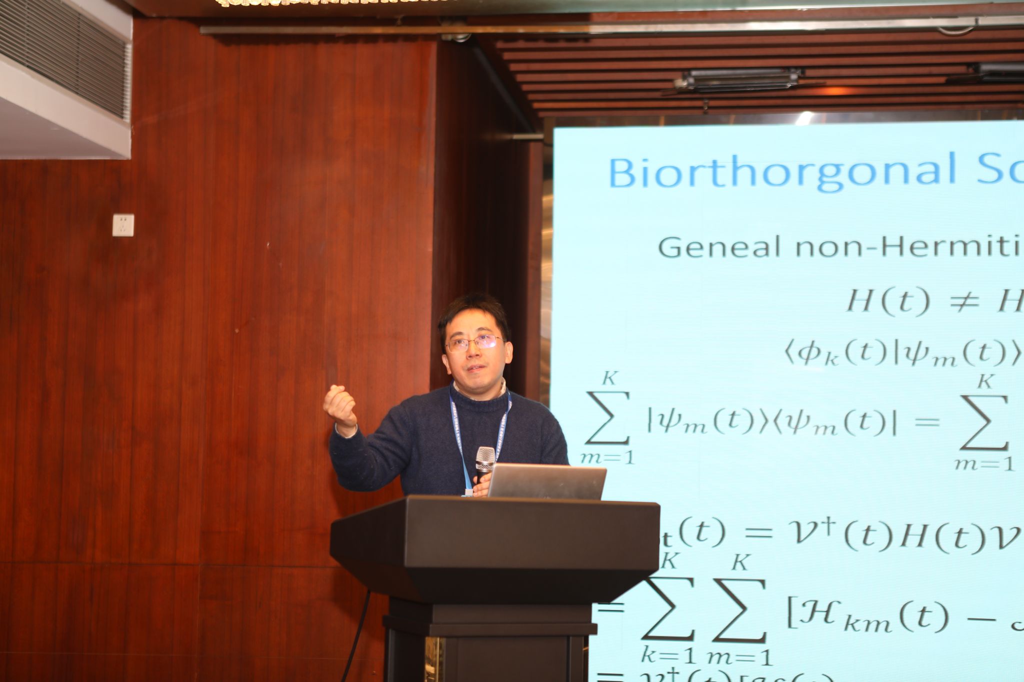 會議期間,與會代表圍繞量子調(diào)控、量子計(jì)算、量子信息等方向開展深入交流,本屆會議邀請多位國內(nèi)知名學(xué)者作專題報(bào)告。中國科學(xué)院大連化學(xué)物理研究所肖春雷研究員以《基元化學(xué)反應(yīng)中的量子現(xiàn)象及精準(zhǔn)調(diào)控》為題,聚焦微觀反應(yīng)過程中的量子效應(yīng)及實(shí)驗(yàn)可控手段;浙江大學(xué)景俊教授提出《非厄米量子系統(tǒng)的通用量子調(diào)控》相關(guān)方法,探討開放量子系統(tǒng)中的調(diào)控策略;鄭州大學(xué)蘇石磊教授帶來《基于優(yōu)化控制的幾何量子計(jì)算》的新進(jìn)展,分享幾何相在量子門實(shí)現(xiàn)中的優(yōu)勢;重慶郵電大學(xué)朱家驥教授介紹《非厄米SSH模型與自旋軌道耦合》的最新理論進(jìn)展;遼寧石油化工大學(xué)張起教授就《非厄米量子計(jì)算》展開討論,體現(xiàn)非厄米理論在信息處理中的潛能。每場報(bào)告兼顧前沿理論與可實(shí)現(xiàn)路徑,內(nèi)容豐富、學(xué)術(shù)性與應(yīng)用性兼?zhèn)洹?/p>