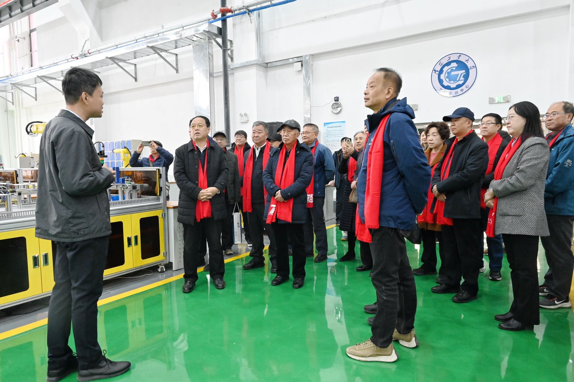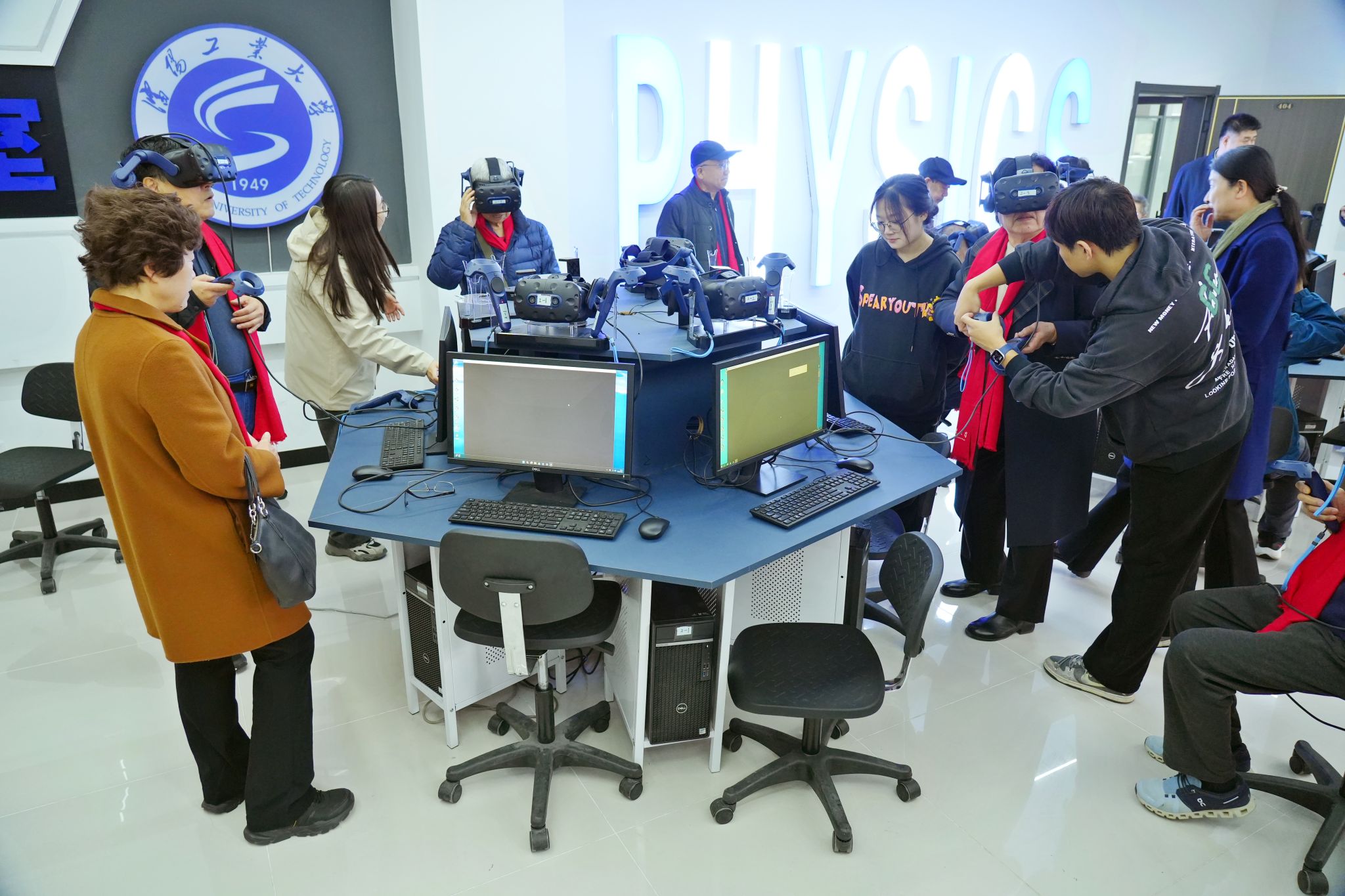 座談會后,老同志們觀賞中央校區景色并合影留念,實地走訪工程實訓中心、物理實驗中心等教學實踐場所,深入了解學校近年來在人才培養、科研創新等方面的發展成果,現場體驗了VR技術等先進教學輔助設備。
