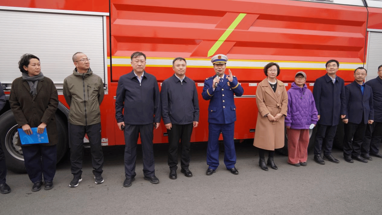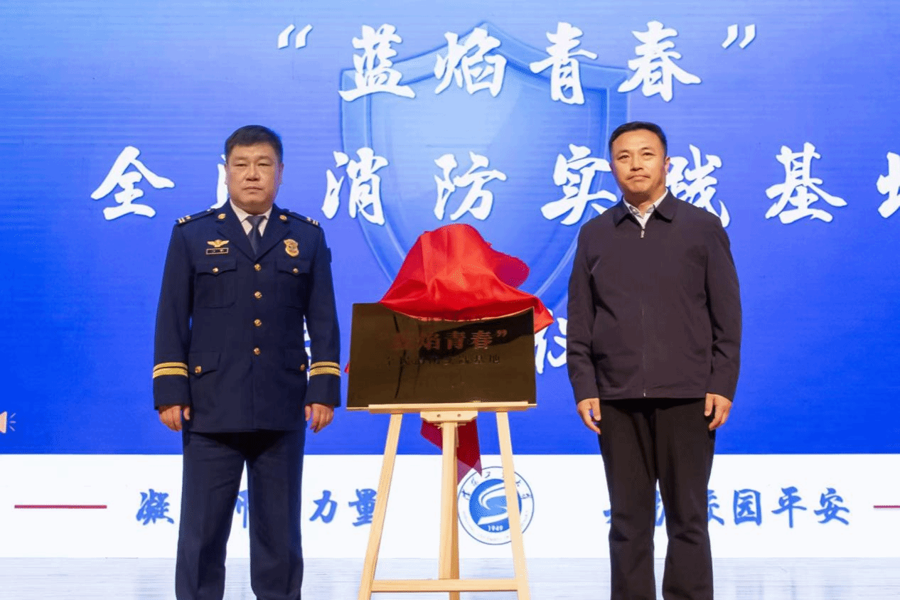 儀式上,王彪和馬凱共同為“藍焰青春”全民消防實踐基地揭幕。藍盾平安校園服務大隊的指導教師陳曉分別從隊伍的發展歷史、未來將如何聯合經開區消防救援大隊把藍盾打造為一個以“校隊聯動、實踐育人、安全護航”為核心,集“消防宣傳、技能培訓、志愿服務”于一體的校園消防安全教育實踐基地作發言,李昊原同學代表藍盾平安校園服務大隊作表態發言。