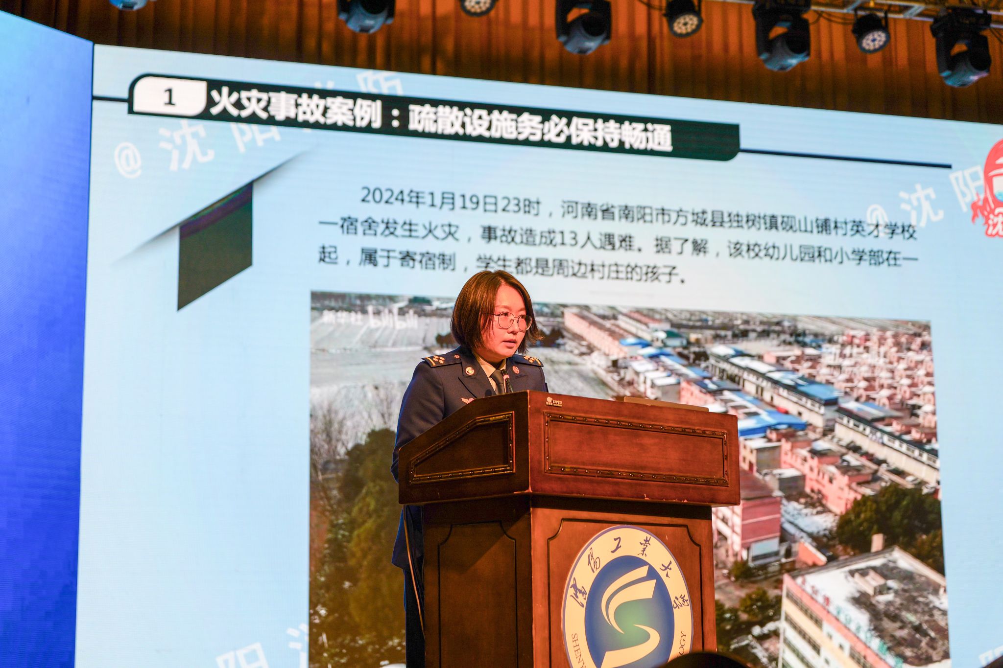 為切實發揮廣大學生在平安校園建設中的積極作用,進一步提高師生員工的消防安全意識,增強自救互救能力,打造平安和諧校園,11月5日下午,學校與經開區消防救援大隊在工大會堂舉行了沈陽消防駐沈陽工業大學“藍焰青春”全民消防實踐基地揭牌儀式。黨委常委、副校長王彪,沈陽市消防救援局副局長馬凱,經開區消防救援大隊長王平,以及學校相關職能部門負責人、各學院學生工作負責人、藍盾平安校園服務大隊全員和新生代表共800余人參加儀式。儀式由公安處處長李杰主持。