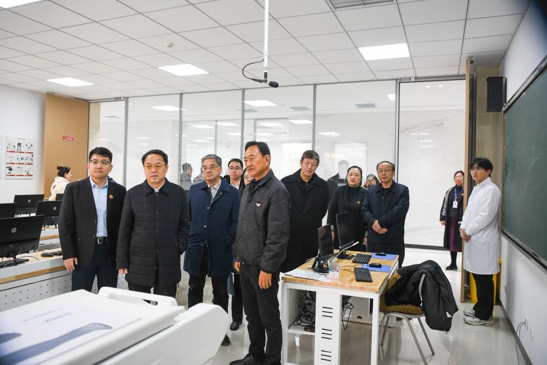 在沈陽城市學院黨委書記劉懷民,董事局主席、校長徐偉浩的陪同下,學校一行深入沈陽城市學院體育美育教學中心、“一站式”學生社區、醫學實訓中心、新工科實踐教學中心、遼寧省融媒體實驗教學示范中心等地實地考察,深入了解學院教育教學環境及特色人才培養等有關情況。