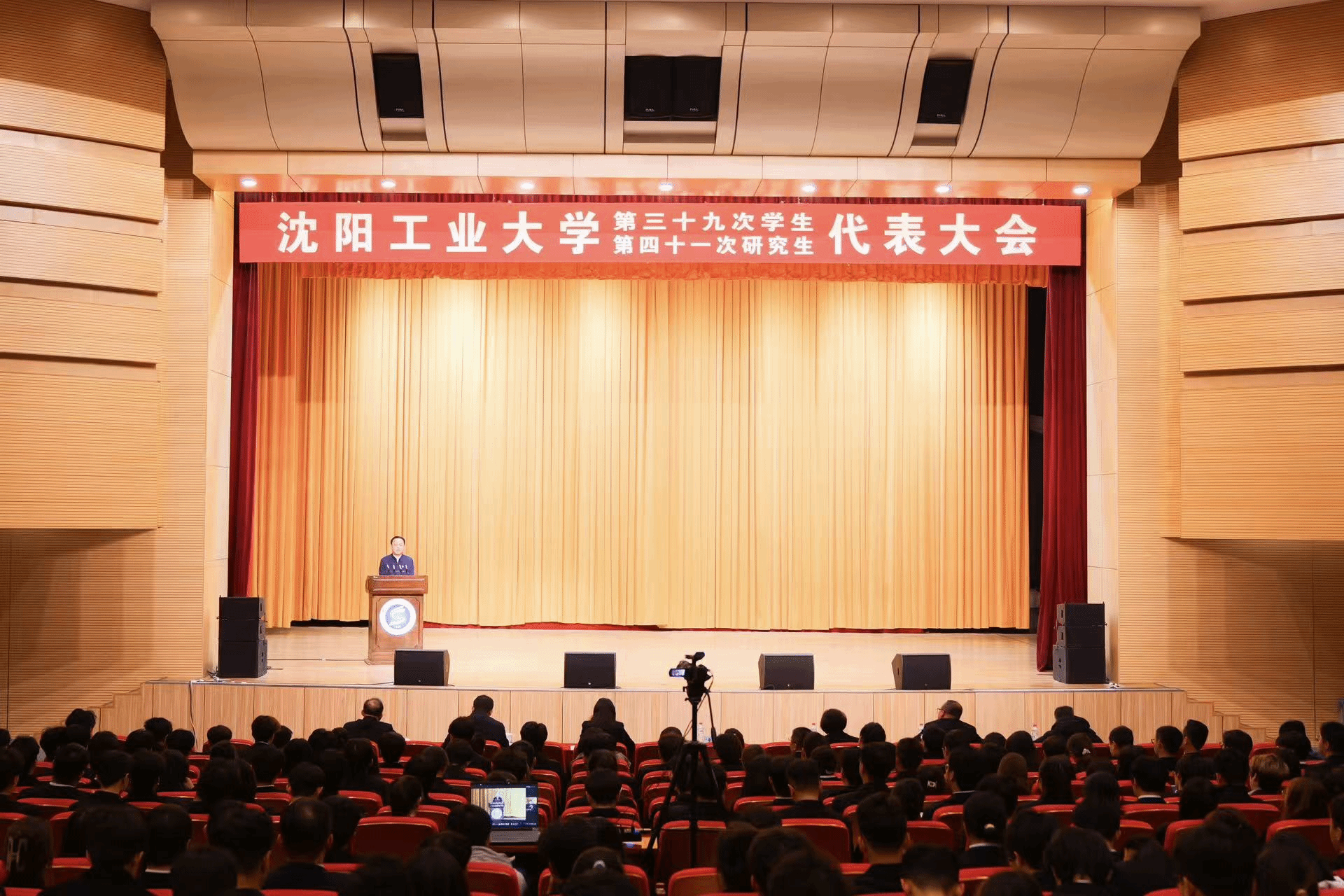 賈玉明在工大會堂為參加學生代表大會和研究生代表大會的學生代表們講授專題思政課,遼陽分校學生代表通過線上直播同步學習。黨委副書記柯麗,黨委常委、宣傳部部長李媛媛及有關職能部門負責同志參加活動。