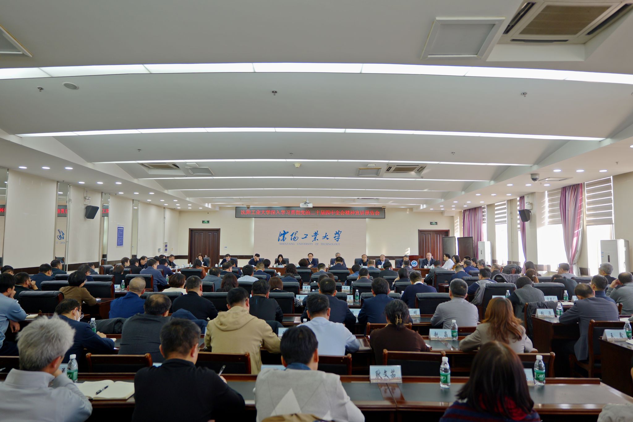 為深入學習領會、全面準確把握黨的二十屆四中全會精神,切實把思想和行動統一到黨中央決策部署上來,12月8日,學校在校部五樓會議室召開學習貫徹黨的二十屆四中全會精神宣講會。黨委書記賈玉明作宣講報告,全體校領導出席會議,機關中層干部、二級單位中層正職、遼陽分校班子成員參加報告會。